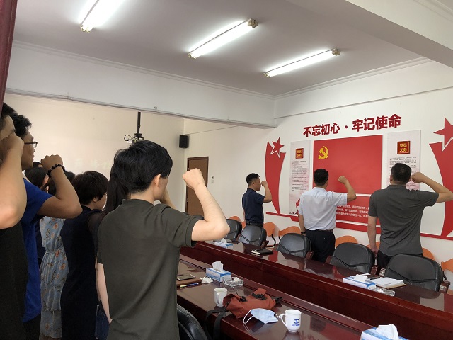 灯塔大课堂第11课《榜样讲党课》结束后,山东广信检测集团机关党支部开展了重温入党誓词、谈收获、谈体会、谈思路、谈建议的活动。由机关党支部书记张向文同志带领重温入党誓词,庆祝党的生日。当我们读完“我志愿加入中国共产党,拥护党的纲领,遵守党的章程,履行党员义务,执行党的决定,严守党的纪律,保守党的秘密,对党忠诚,积极工作,为共产主义奋斗终身,随时准备为党和人民牺牲一切,永不叛党。”的入党誓词后,并郑重的读出宣誓人的时候,我们是无比的自豪和骄傲,我是共产党员。
